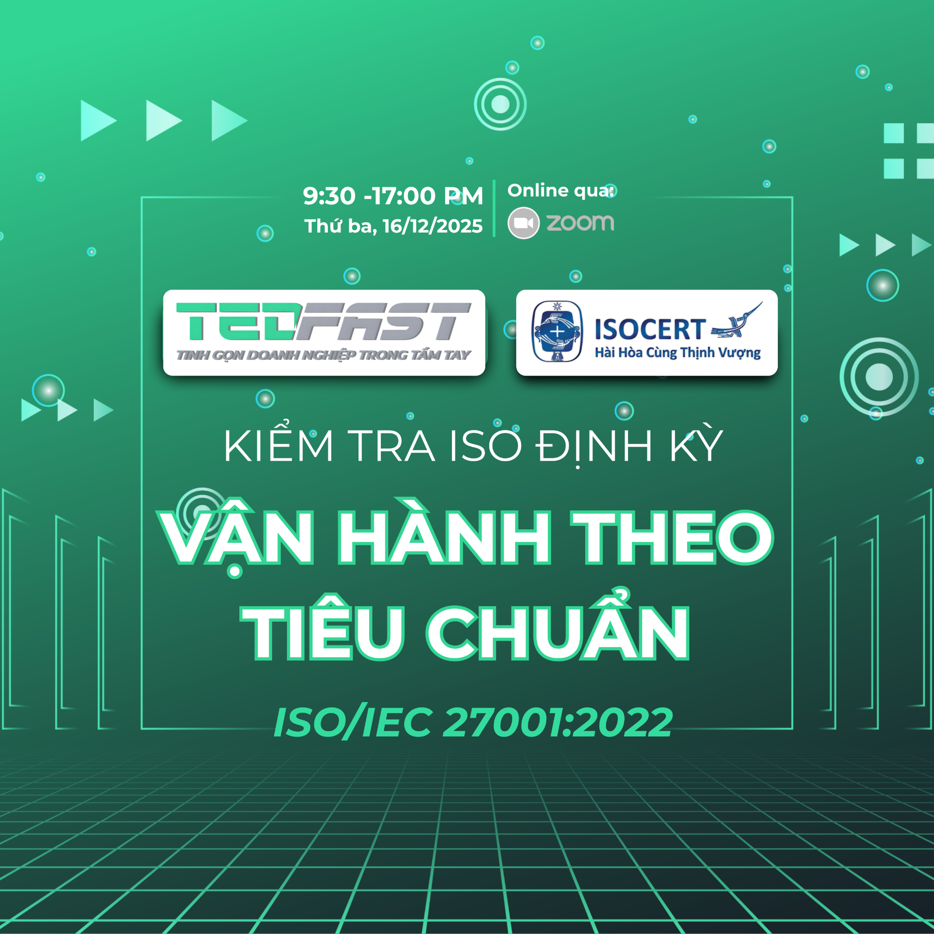 Ngày 16/12/2025, Tedfast đã tổ chức và hoàn thành hoạt động đánh giá ISO định kỳ theo tiêu chuẩn ISO/IEC 27001:2022 – tiêu chuẩn quốc tế về Hệ thống Quản lý An toàn Thông tin (Information Security Management System – ISMS).
