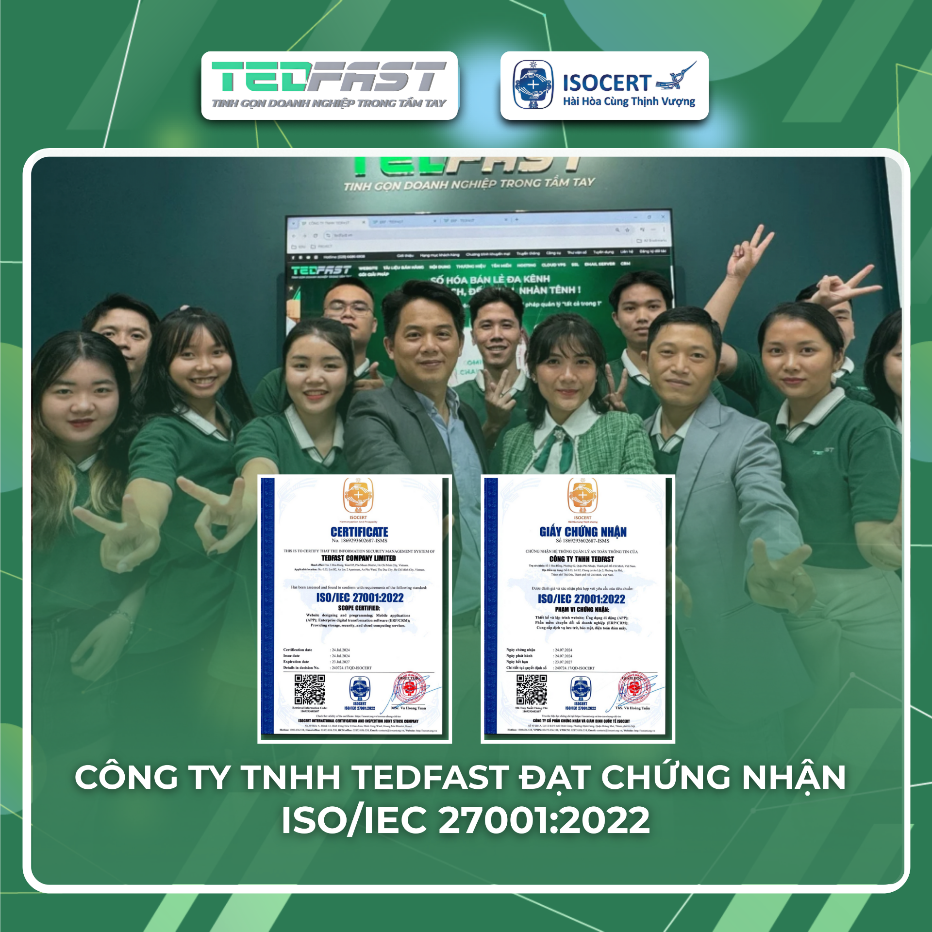 TEDFAST HOÀN THÀNH ĐÁNH GIÁ ISO ĐỊNH KỲ THEO TIÊU CHUẨN ISO/IEC 27001:2022